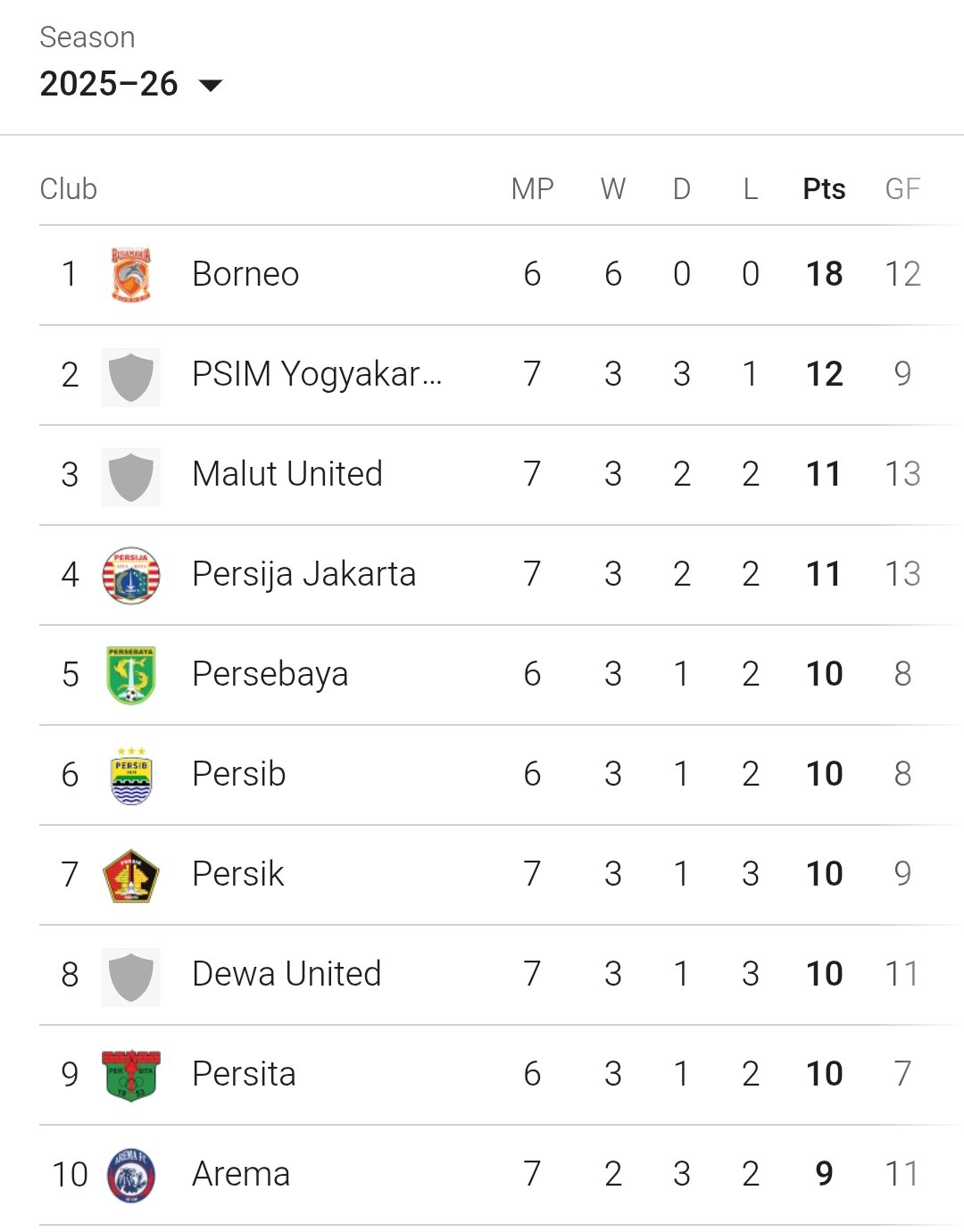 Tambahan tiga poin memantapkan posisi Borneo di puncak klasemen dengan poin 18, sementara Persija di posisi keempat dengan 11 poin.