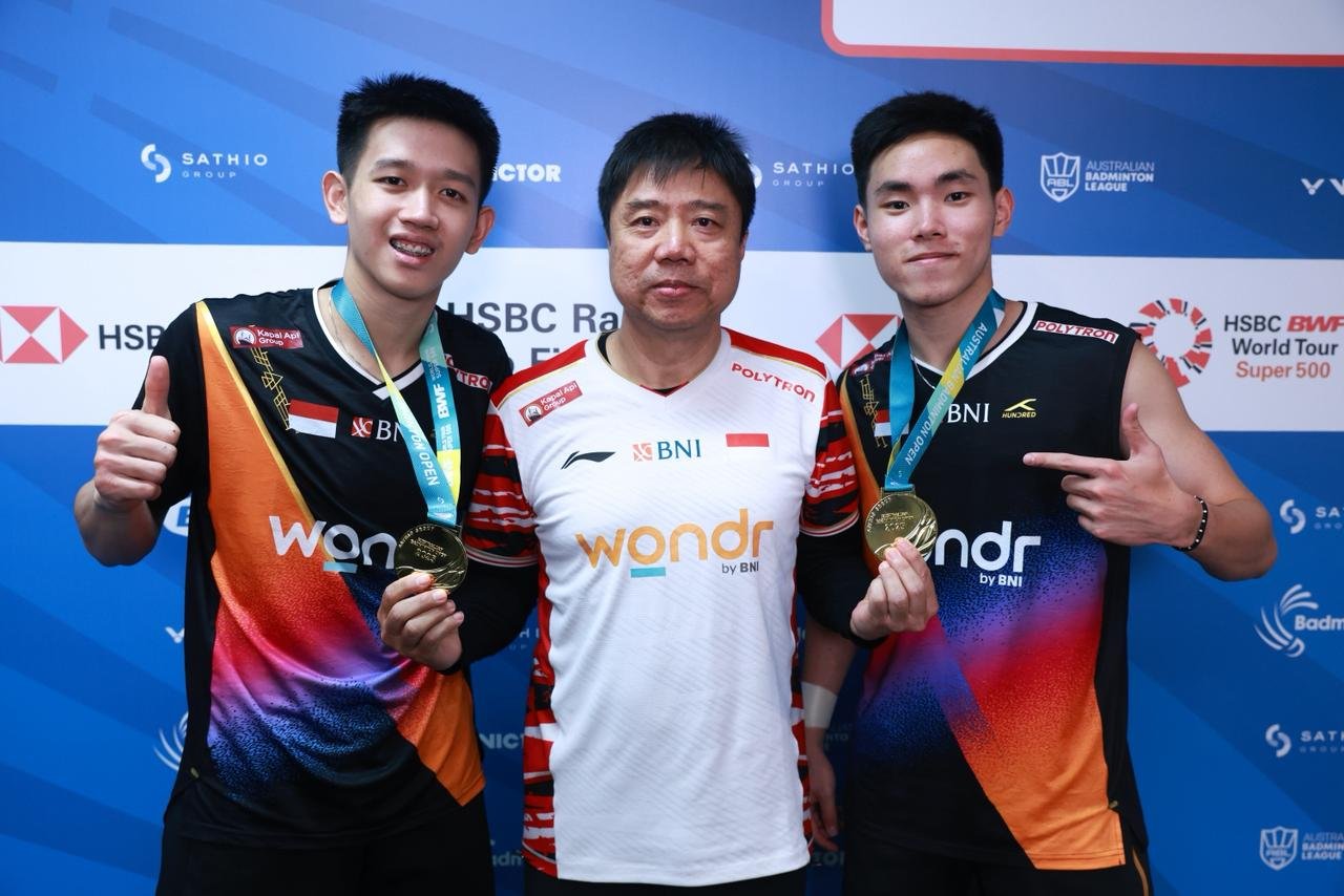 Raymond/Nikolaus berpose dengan pelatih usai juara Australian Open 2025-dok: PBSI-