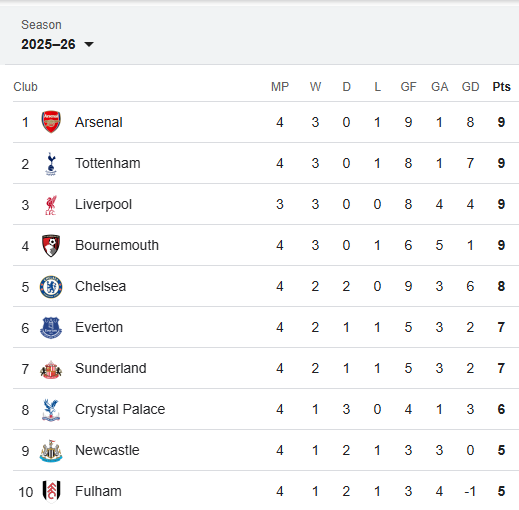 Hasil dan Klasemen Liga Inggris: Arsenal dan Tottenham Pesta Gol