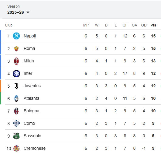 Selepas jeda internasional, kedua tim bakal merumput lagi pada Minggu 19 Oktober 2025, saat Milan menjamu Fiorentina dan Juventus melawat ke markas Como.