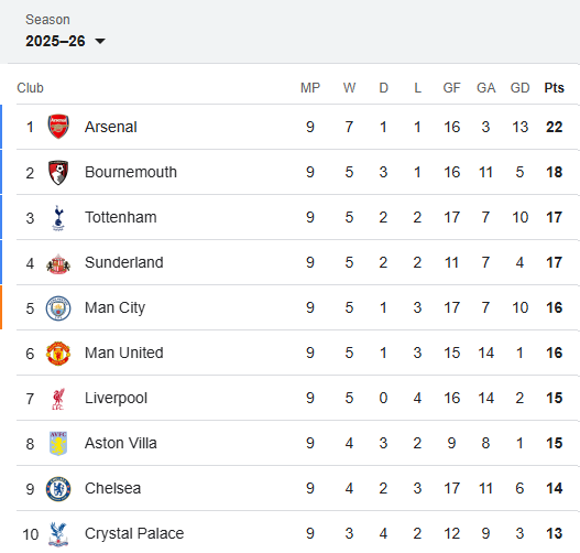 Hasil dan Klasemen Liga Inggris: Manchester City Keok, Arsenal Melaju Terus di Puncak
