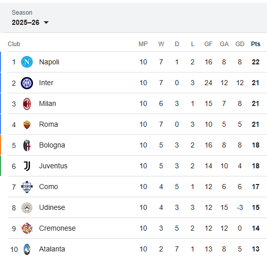 Klasemen Liga Italia