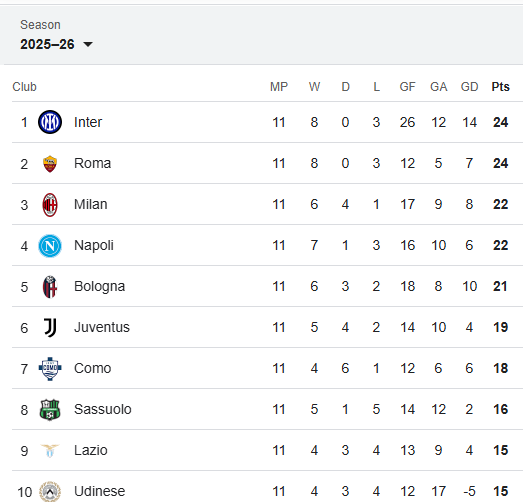 Klasemen Liga Italia