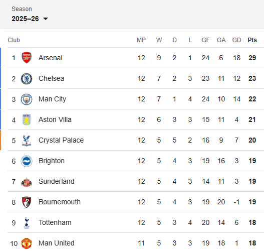 Klasemen Liga Inggris 1--