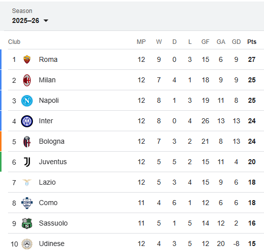 Klasemen Liga Italia