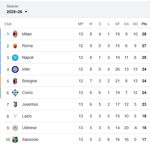 Hasil dan Klasemen Liga Italia: Juventus Sikat Cagliari, AC Milan Tekuk Lazio untuk Posisi Puncak