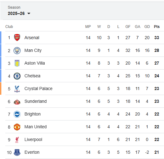 Klasemen Liga Inggris