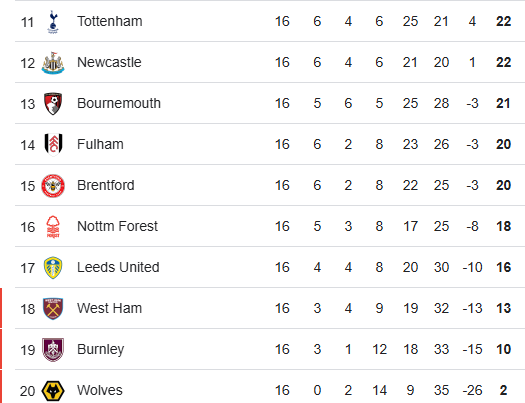 Sedangkan Bournemouth naik ke urutan 13 dengan torehan 21 poin, demikian yang dilansir laman resmi Liga Premier Inggris.
