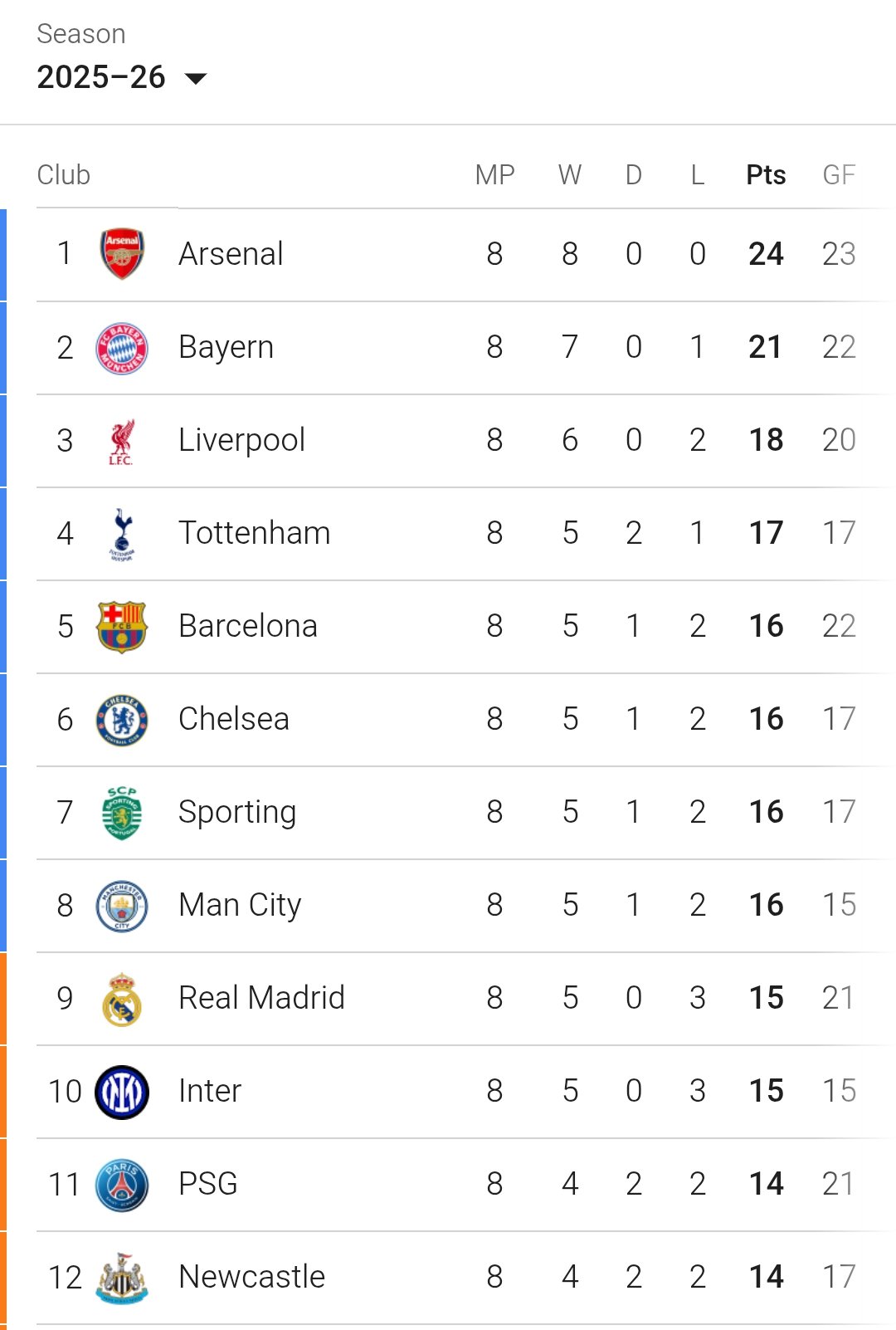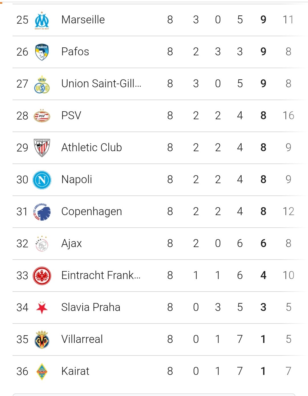 PSG dan Newcastle memulai musim di delapan besar tetapi bermain imbang 1-1 di Paris, yang membuat mereka turun peringkat ke posisi ke-11 dan ke-12.
